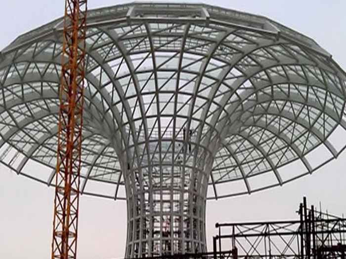 二、球形网架结构因其结构新颖,受力合理,自重轻、用钢量低等优点。如大型体育场馆球形松原螺栓球网架、公共场馆球形网架、电厂松原螺栓球网架、水泥工业球形网架、仓储物流球形网架、松原干煤棚工业球形网架、松原收费站松原加油站球形网架、展览中心、影剧院、商场、航站楼、候车厅、工厂松原车间、仓库、电视塔等球形螺栓球节点网架。国内球形网架结构主要分为:松原焊接球节点网架及螺栓球节点网架两种。螺栓球节点网架其构件工厂内加工量较大,现场安装便捷,适用于现场工期紧,松原施工条件、用电量受制约,网架形状复杂、松原杆件定位困难的异形结构。螺栓球节点球形网架系统基本由松原杆件、螺栓球、支撑支座等组成。按照节点形式可分为交叉松原桁架体系、四角锥体系、三角锥体系等。支撑方式多为固定支座支撑。对于大面积、大跨度及有特殊受力或伸缩要求的网架结构可采用橡胶支座、滑移支座、球铰支座等支撑形式,以满足结构自身的受力稳定、均衡,便于内力释放等设计要求。